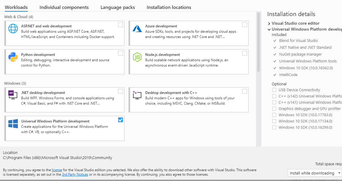 Choose the "Universal Windows Platform Development" workload. After you have finished installing Visual Studio, open a "Developer Command Prompt for VS". Navigate to the folder your server.exe file is in.
